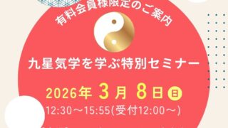《本日締め切り緊急募集!》2026/03/08有料会員様限定【和の会】九星気学を学ぶ特別セミナーのご案内