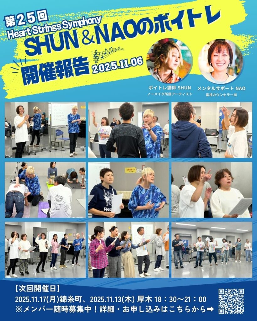 11/6(木)は、オフィス尚主催【Heart Strings Symphony】SHUN&NAOのボイトレ25回目のレッスンでした。