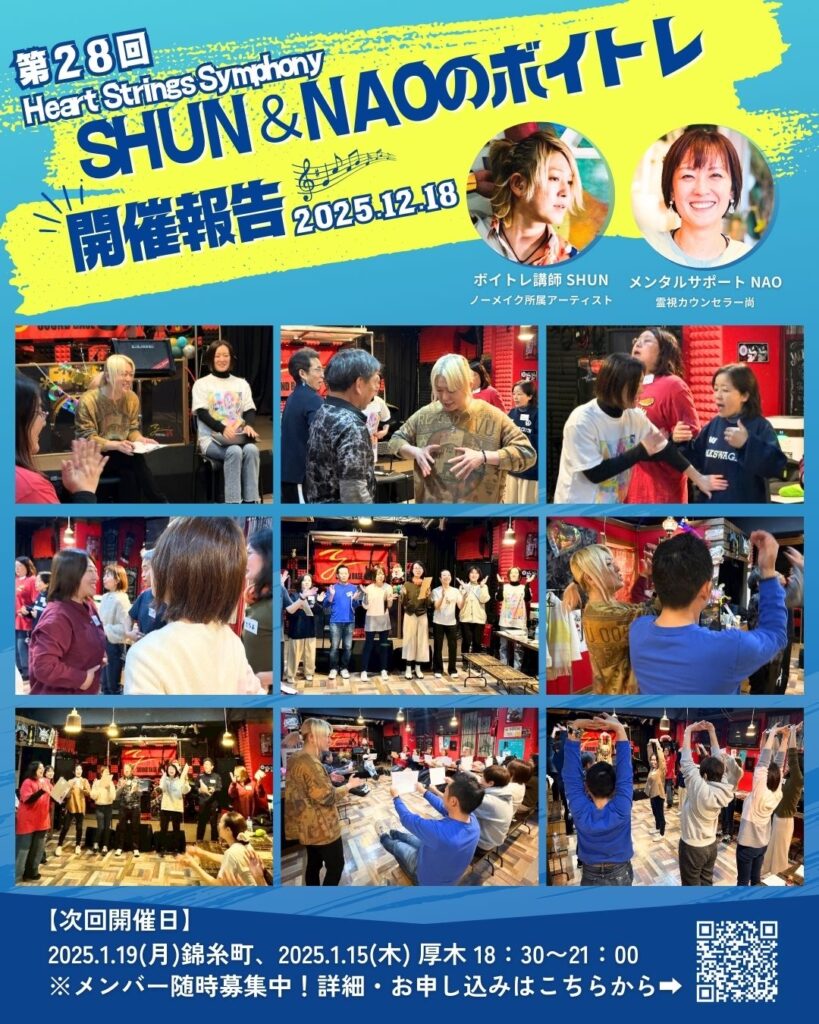 12/18(木)は、オフィス尚主催【Heart Strings Symphony】SHUN&NAOのボイトレ28回目のレッスンでした。