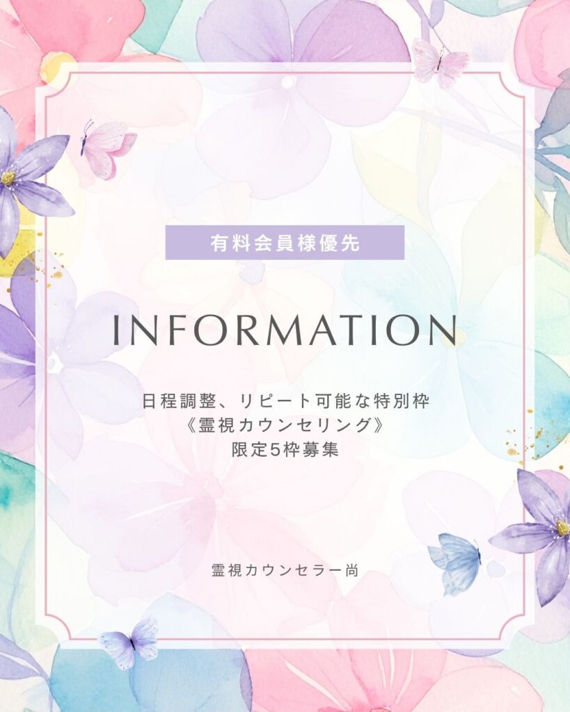 【有料会員様優先】日程調整可能《霊視カウンセリング》限定 5枠募集